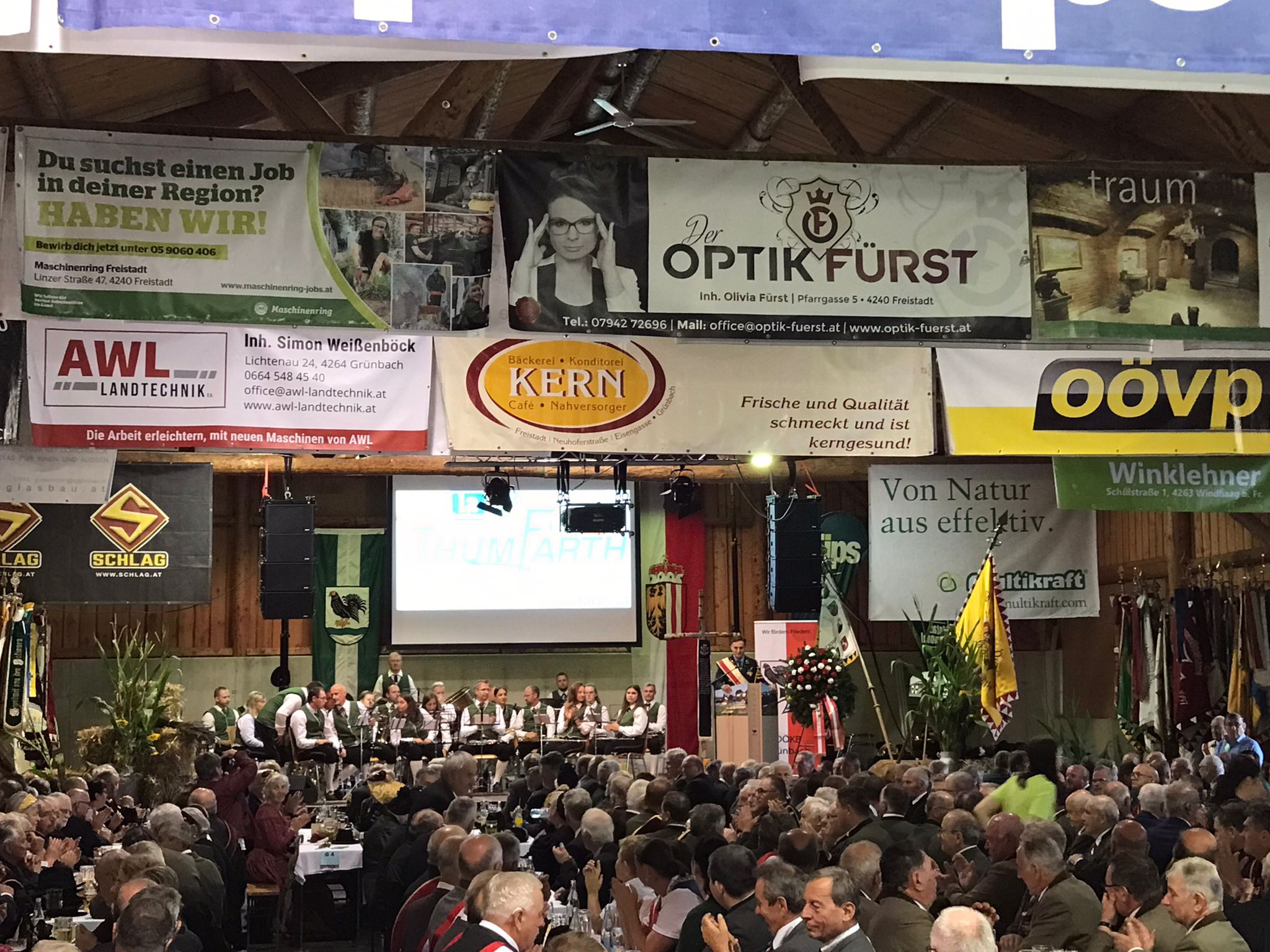 Der Wettergott war den Festgästen gnädig und so konnte um 9:15 Uhr pünktlich mit dem Festmarsch samt Defilierung in die Festhalle gestartet werden. Nach der Begrüßung durch Obm. Olt Mag. Mario Etzelstorfer folgten ein Totengedenken durch Pfarrer Franz Mayrhofer und Grußworte der Ehrengäste. Die Reden waren allesamt im Zeichen des Friedensgedankens des OÖKB, der vor allem seitdem Ausbruch des Ukraine-Krieges noch mehr in den Vordergrund gerät. Auch Festredner Bgdr Dr. Johannes Kainzbauer mahnte in seiner gelungenen Ansprache an die Wichtigkeit der umfassenden Landesverteidigung und des Österreichischen Bundesheeres.