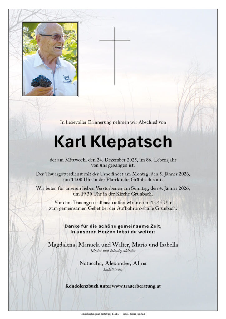 Am 24. Dezember 2025 ist Kam. Karl Klepatsch im Alter von 85 Jahren verstorben. Seine Kameraden werden ihm ein treues Andenken bewahren und ihn auf seinem letzten Weg begleiten.